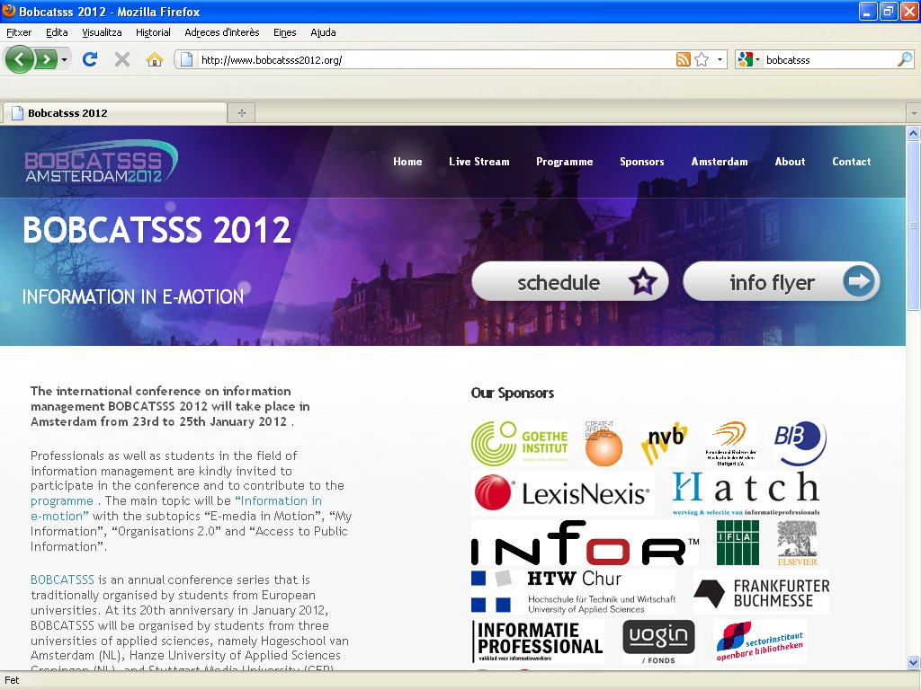 Com molts de vosaltres ja sabeu, la setmana passada vaig fer un viatge a Amsterdam per a participar en el congrés internacional Bobcatsss. A la sala de conferències del Hogeschool van Amsterdam vaig presentar el meu projecte "Augmented reality as a tool to bring young users to the public libraries" (podeu veure com va anar la conferència en aquest enllaç).